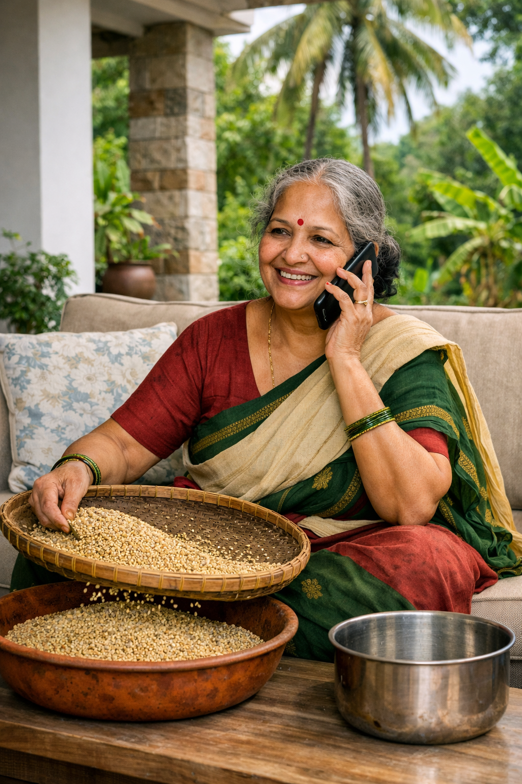 ‘நீங்க போனதுக்கப்பறம் நம்ம சந்திரா டாக்டர் பேசினாங்க. மூணு நேரமும் புழுங்கலத் திங்கறோமாம். கம்பு, சோளம், ராகின்னு சேர்த்தணுமாம்பா. நான் ஊற வச்சிட்டேன். நல்லதச் சீக்கிரம் ஆரம்பிங்க’ என்ற பதில் அவனுக்குக் கோபத்தையும் நிம்மதியையும் ஒன்றாக வரவழைத்தது.