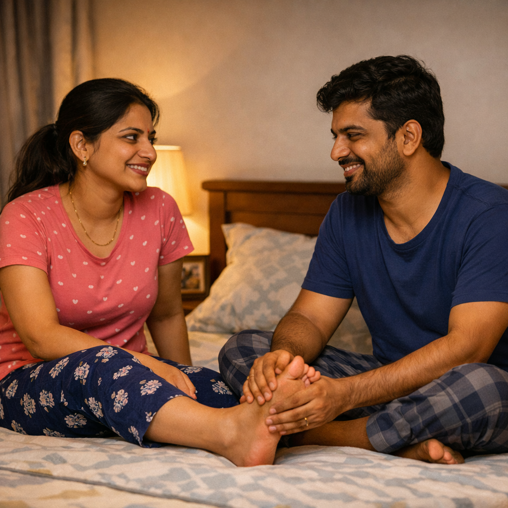 ஊரடங்கியது போன்றதொரு அமைதி. கௌளிச்சொல் மட்டுமே கேட்டது. அது அவர்களுக்கு மட்டுமேயான வேளை என்பதை உணர்த்தும் ஒலி அது. நித்யா நாள் முழுவதும் நடந்தவற்றை ஒன்று விடாமல் மாறனிடம் சுவாரஸ்யமாகத் தொகுத்து வழங்கிக் கொண்டிருந்தாள். இடையே சில கேள்விகள் கேட்டாள். பதிலுக்குக் காத்திராமல் அவளே விடையளித்தாள். அந்த நீண்ட உரையாடல் முழுக்க மாறன் அவளது பாதங்களை அமுக்கி விட்டபடியே, தலையாட்டிச் சிறுநகையுடன் கேட்டுக்கொண்டிருந்தான்.